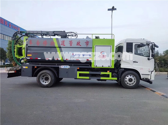 程力專用汽車股份有限公司東風(fēng)天錦清洗吸污車采用S K15水循環(huán)真空泵,罐體上方帶液壓吸污吊桿,可以360度旋轉(zhuǎn),遙控控制,配備一根10米吸污管,尾部一個150排污球閥,帶一個100的自流口;湖北程力集團(tuán)東風(fēng)天錦清洗吸污車配備德國進(jìn)口高壓泵,22兆帕,帶60米19號高壓管,帶10個組合噴頭,罐體可以液壓舉升,后大蓋可開啟,帶4個緊鎖裝置,帶箭頭燈,LED夜間作業(yè)燈。