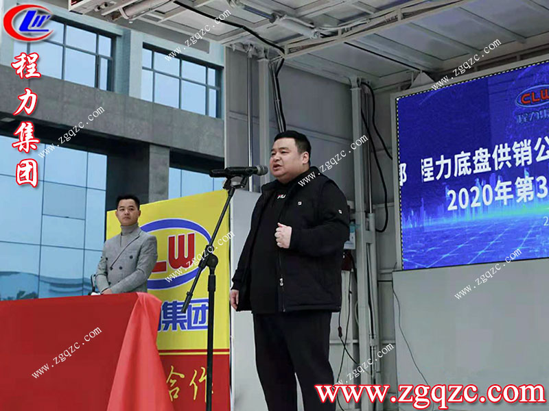 可以看到程阿羅親自上臺為中獎?wù)哳C獎,活動分為一等獎、二等獎、三等獎,獎品也是非常的豐富。臺下的觀眾座無虛席,全都認真的聽著程阿羅總經(jīng)理的講話致辭,這次圓滿的交付了3000臺江鈴底盤,對程力集團來說是一個很好的開始。