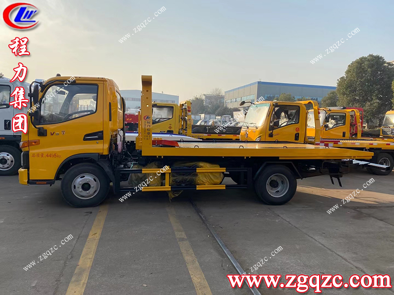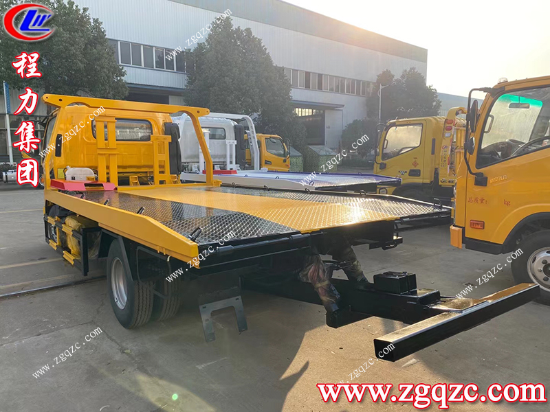 首先我們以湖北程力集團國六的江淮駿鈴一拖二清障車來舉例,底盤采用駿鈴V5,安徽康明斯130馬力發(fā)動機, 軸距3365mm,單排駕駛室,星銳變5檔速箱,斷氣剎,帶有電動門窗、中控鎖、遙控鑰匙、定速巡航,多功能方向盤,后視鏡加熱,原裝空調(diào)。3噸上裝,4噸卷揚,20米鋼絲繩,有后托臂,主板約4.1米,尾板1.2米.寬2.3米,雙側(cè)聯(lián)動操作,液壓伸縮尾板,配警燈喊話器一套和輔助小車一套。