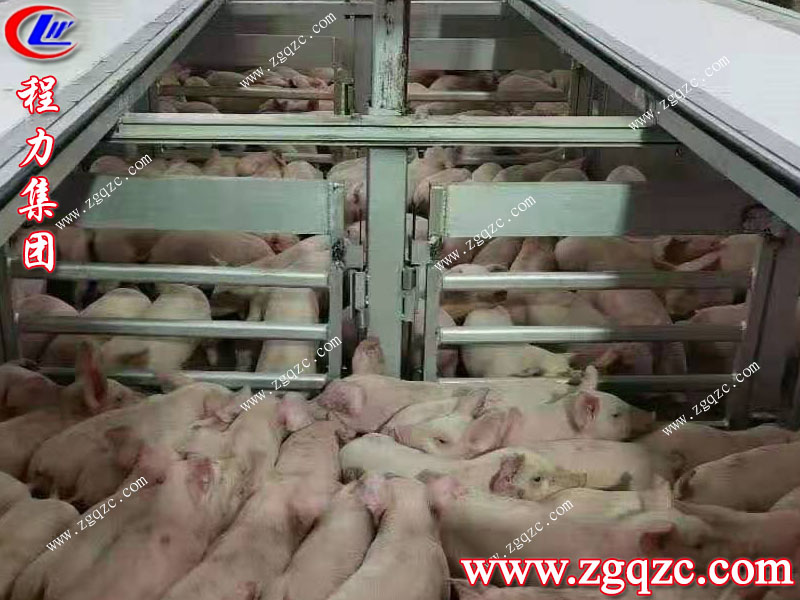 第一款就是湖北程力的畜禽運(yùn)輸車,程力集團(tuán)的畜禽運(yùn)輸車車身采用鋁合金制造,霧化噴頭和不銹鋼的飲水咀,相比鋼制車體,重量可以減輕20-30%,平均一臺車可以裝400頭小豬仔,車廂升降平臺由全液壓桿操作,帶有自動溫控系統(tǒng),車廂設(shè)計合理方便控制家畜上下車。遙控升降,操作起來更加簡單方便。內(nèi)部空間大,家畜在車廂內(nèi)體驗更加舒適。給小豬仔們一個臨時溫暖的家。