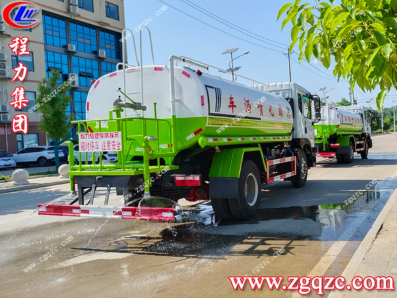 下面就由小編為大家介紹一下發(fā)往內(nèi)蒙古通遼市用來抗旱救災(zāi)的灑水車吧!湖北程力東風(fēng)D9灑水車采用東風(fēng)公司原裝底盤,玉柴200馬力的發(fā)動機(jī),3950軸距,正宗國六排放標(biāo)準(zhǔn),法士特八檔變速箱,帶有電動門窗,原裝空調(diào),中控,行車記錄儀,方向助力,ABS,斷氣剎。罐體容積約12立方,采用優(yōu)質(zhì)碳鋼鋼材,具有前沖、后灑和側(cè)噴功能,尾部平臺上安裝了一個(gè)射程約30米的灑水高炮,灑水高炮可根據(jù)使用需求調(diào)成各種形狀。
