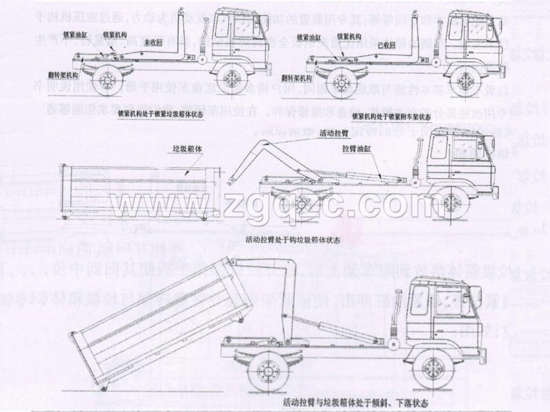上圖為程力專用汽車股份有限公司勾臂垃圾車操作說(shuō)明圖