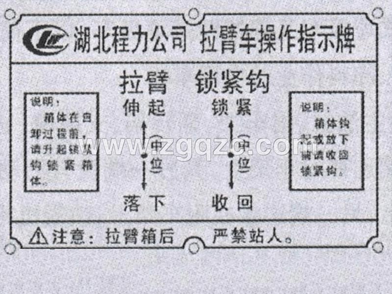 程力專用汽車股份有限公司勾臂垃圾車操作指示牌
